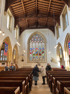Since there are no buses on Sundays in the Cotswolds, I planned to spend my day exploring Stow and the immediate area. After another sumptuous English breakfast, I headed out into the sunny morning. I soon came upon St. Edward's, an Anglican church dating back to Saxon times (900s) today's structure is much much newer. If you can call the 15th century 'newer.' I circled around to the back, taking photos and peering at worn gravestones, when I came upon a curious door flanked by two ancient yew trees. It brings to mind Revelation 3:20, "Behold, I stand at the door and knock..." J.R.R. Tolkien fans see something quite different. Locals are convinced the door was the inspiration for the Doors of Durin, leading into Moria in Lord of the Rings. As I was standing there, the church bells began ringing, announcing morning service. I went to the front door and peered in, not sure whether to enter or not. But a man hurried over and asked me if I'd like to join the service, and I nodded I did. I was handed a small hymnal and order of service, and guided to a pew towards the back. Those of you who know me are aware that this service was nothing at all like Calvary Chapel in Camp Verde! But Truth was spoken (rather animatedly) and the Spirit was there. And I actually new the last hymn and could sing along! It was also communion Sunday, and as is typical of Anglican and Episcopalian churches, the congregants go up to receive the elements. But things have changed since my high school years when I last attended an Episcopalian church affiliated with my private girls' school. Back then, we knelt at the railing, the wafer was placed on our tongue, and the silver chalice with wine was offered. Today, no kneeling (at all) and the pastor dipped the wafer into the wine and placed it into my hands. Below are photos of the church, and the beautiful stained glass window, referred to as the Moses window, quoting the scripture "If they hear not Moses and the Prophets neither will they be persuaded though one rose from the dead."